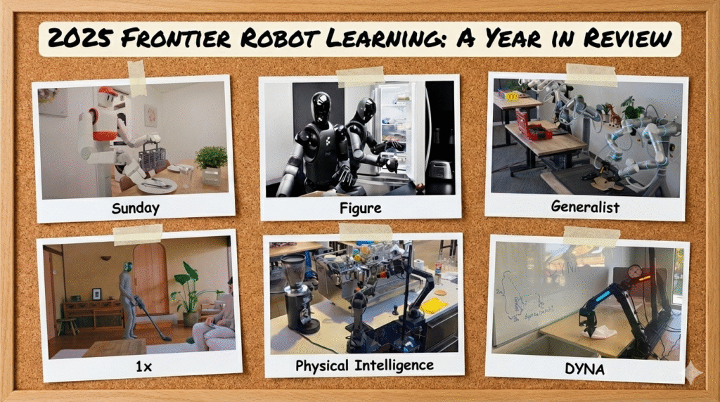 It’s the end of 2025. Robot learning startups have been shipping demos relentlessly this year. Physical Intelligence, DYNA, Sunday, Generalist, 1x, Figure, etc., each selling a step closer to the dream of a robot nanny in people’s homes doing chores.